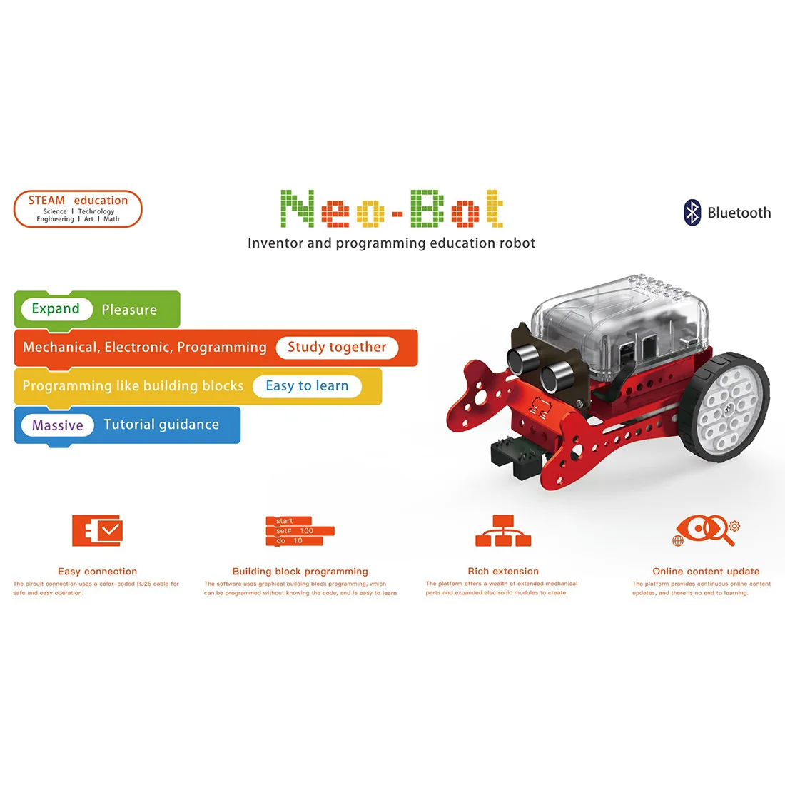 2019 New DIY Neo Programming Scratch Intelligent Obstacle Avoidance Car Robot Kit Toys Games- Red/G